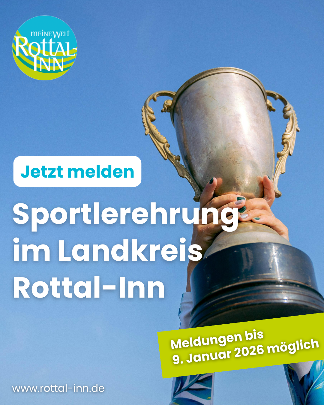 Der Landkreis Rottal-Inn würdigt erneut erfolgreiche Sportlerinnen und Sportler aus Rottal-Inn. „Jedes Jahr aufs Neue ist es schön zu sehen, wie viele erfolgreiche Athleten es bei uns im Landkreis Rottal-Inn gibt“, freut sich Landrat Michael Fahmüller und ruft dazu auf, entsprechend auszeichnungswürdige Leistungen aus dem Jahr 2025 dem Landratsamt zu melden. Rückmeldeschluss ist der 9. Januar 2026. Die Sportlerehrung findet dann im Februar 2026 statt.